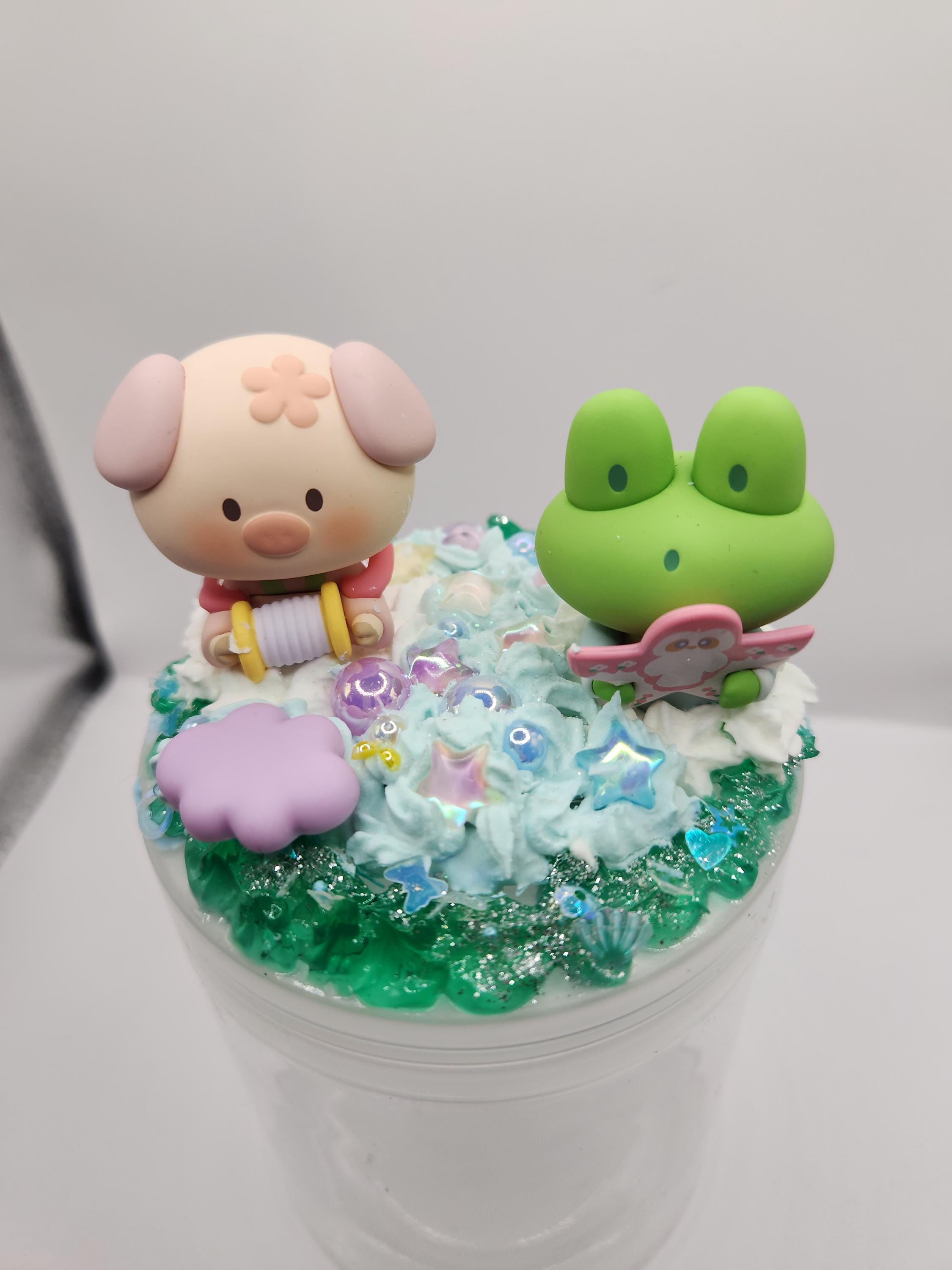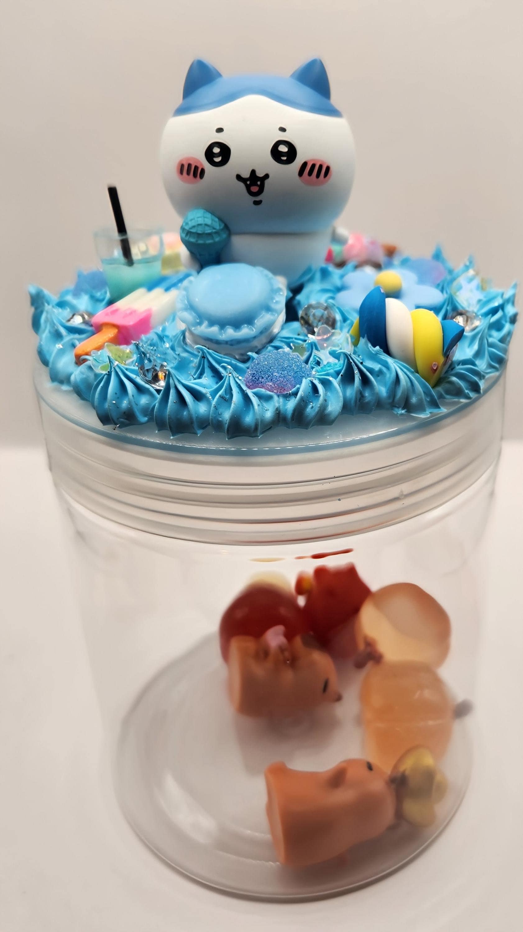 Each 16oz jar is decorated using decoden cream or spackling, resin charms, figures, fake sprinkles and lots of glitter. CUSTOMS AVAILABLE!.