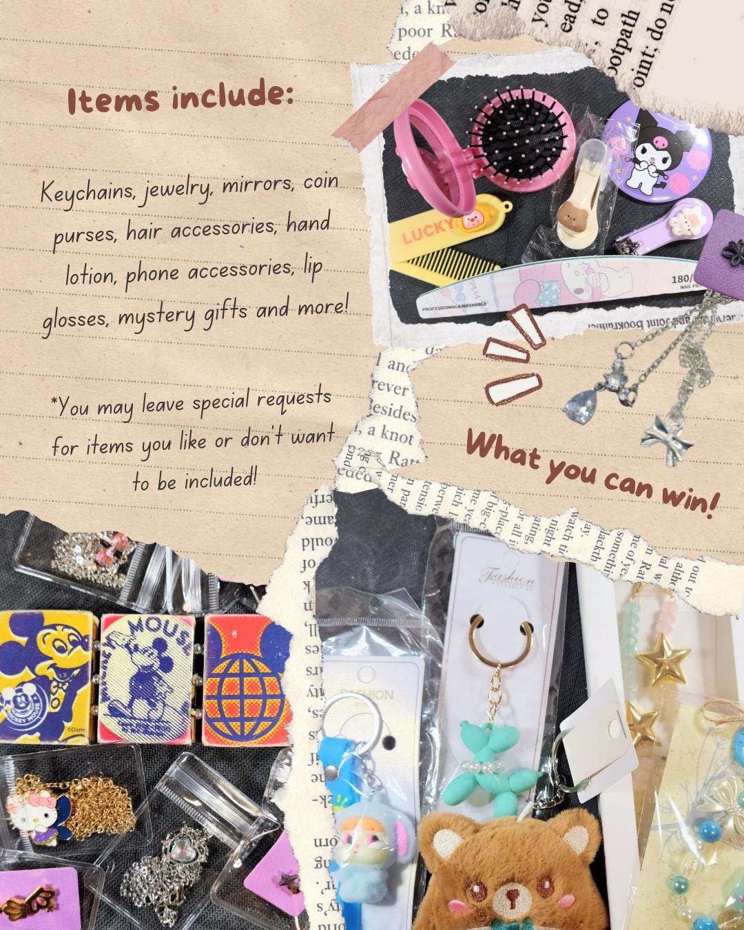 * Character items will vary. Items in pictures are an EXAMPLE ONLY of what you will recieve as my stock is changing constantly. *