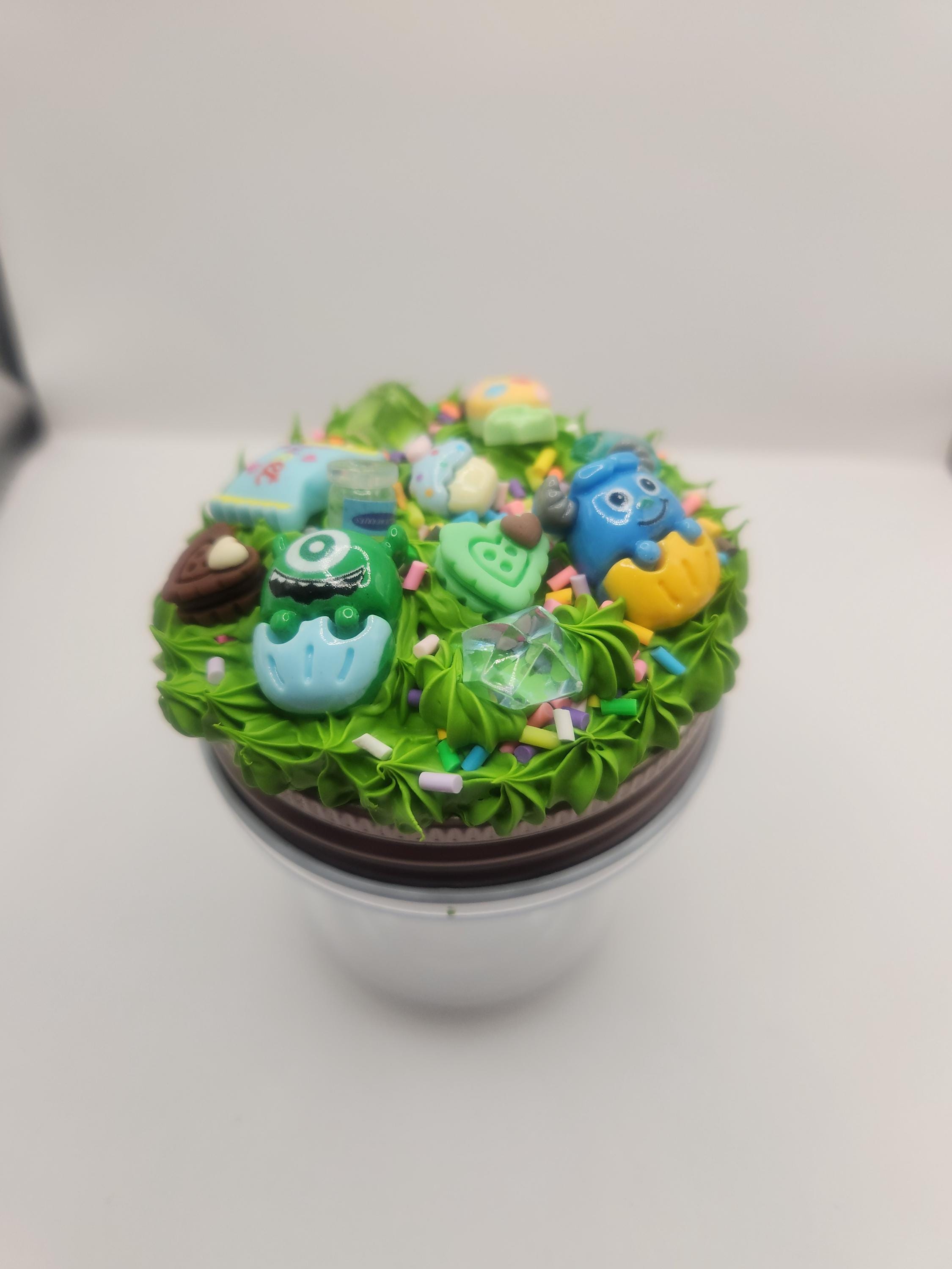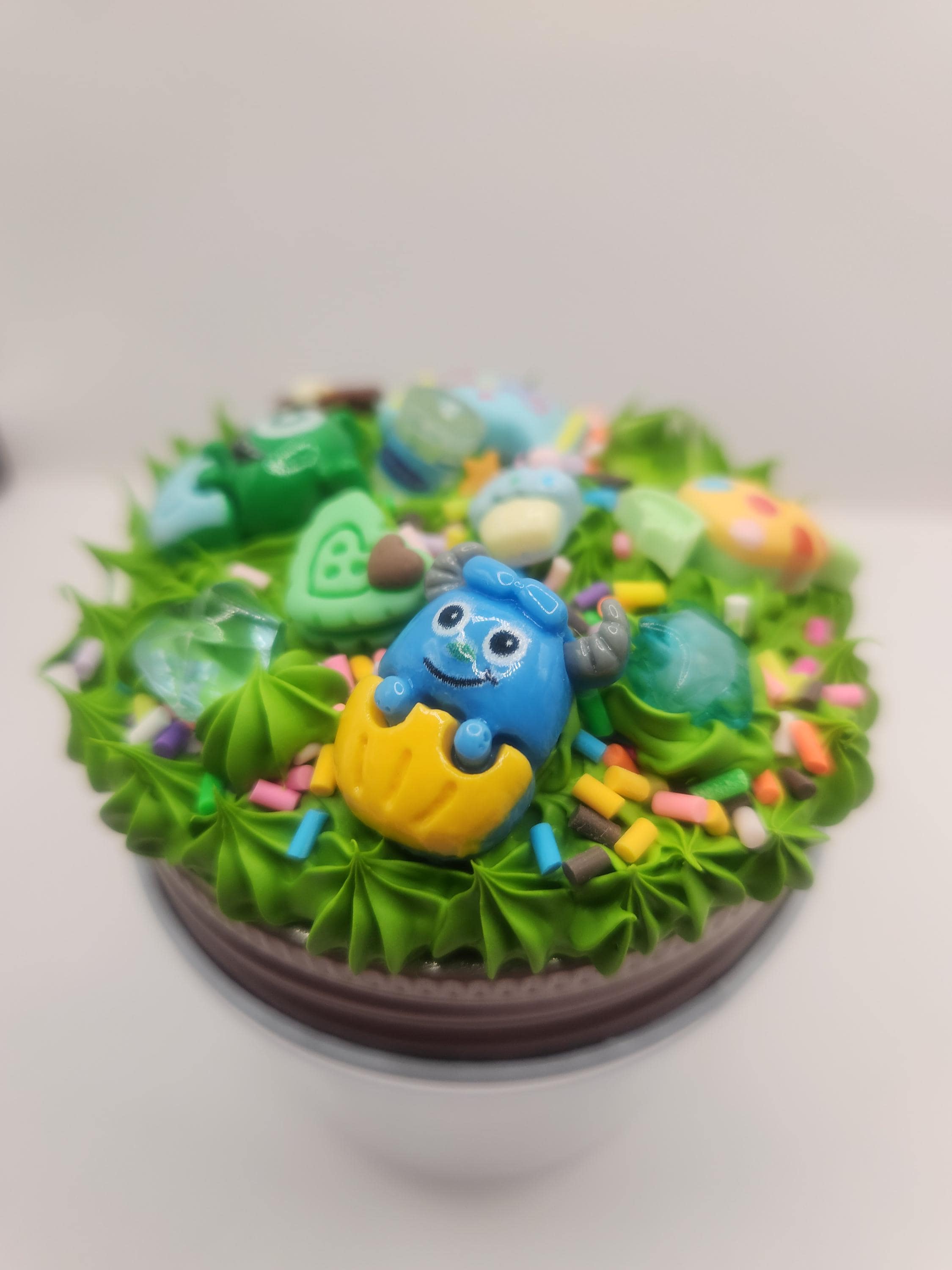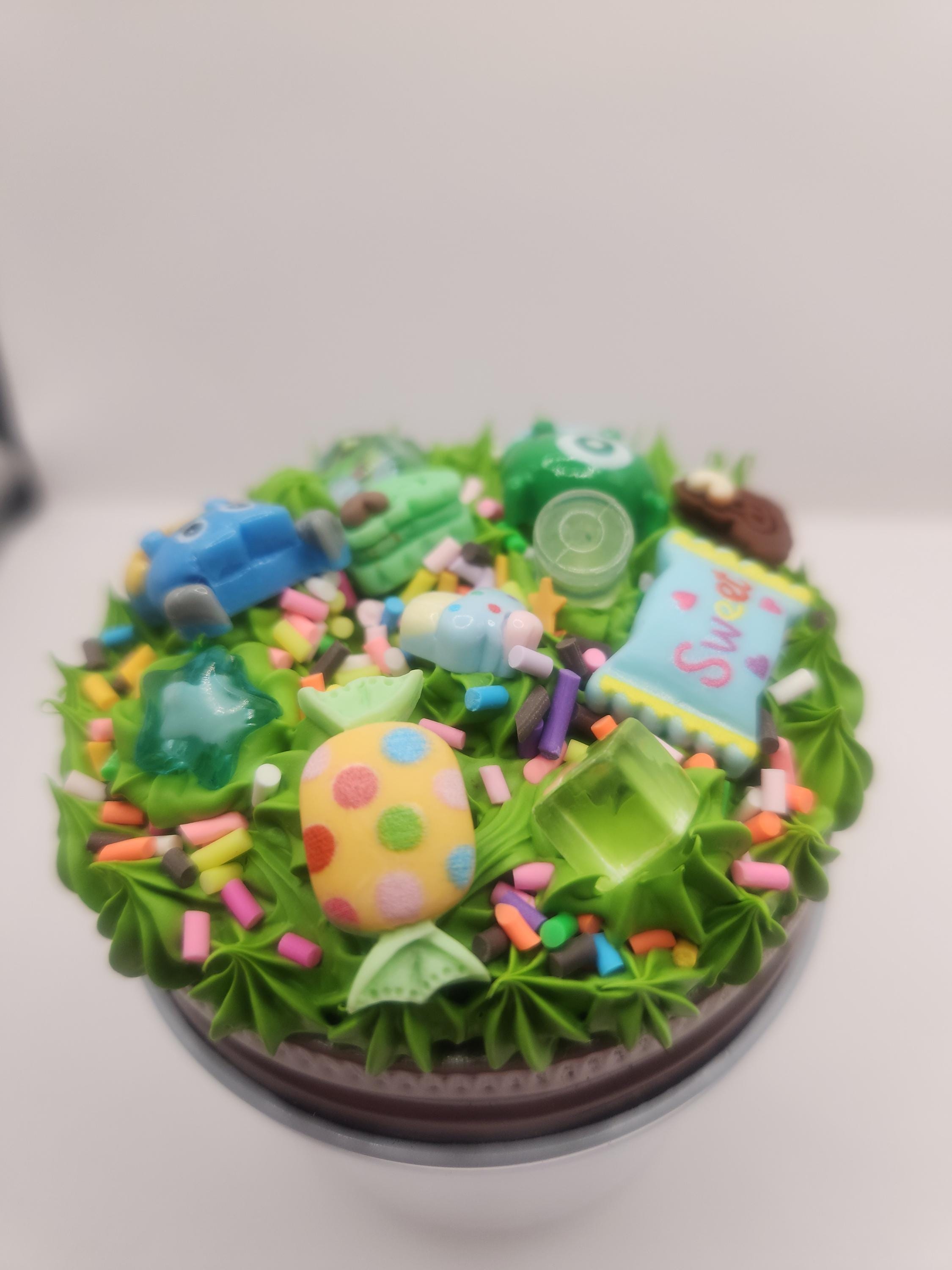 Jar lid is made using spackling, resin charms and fake sprinkles.