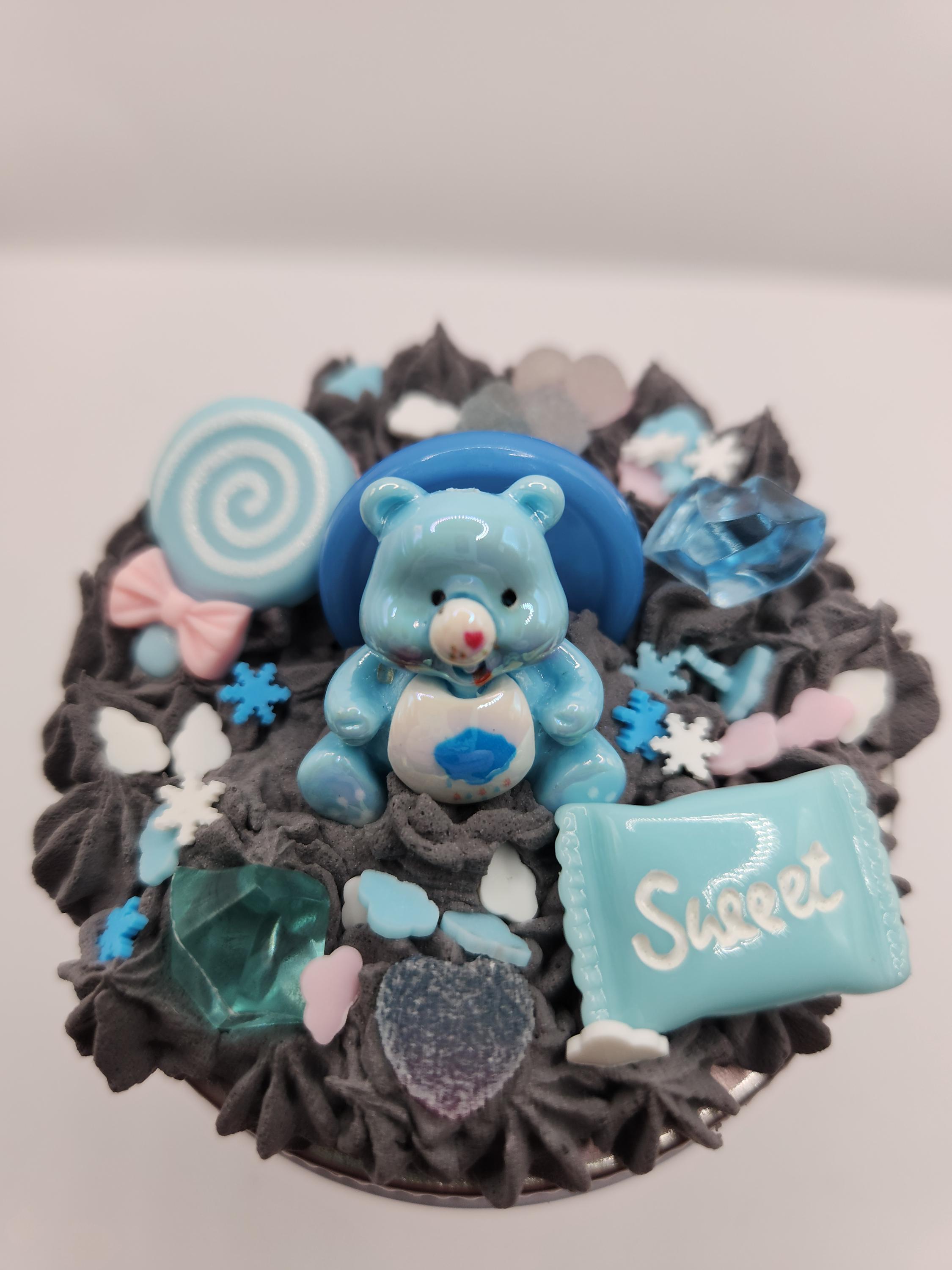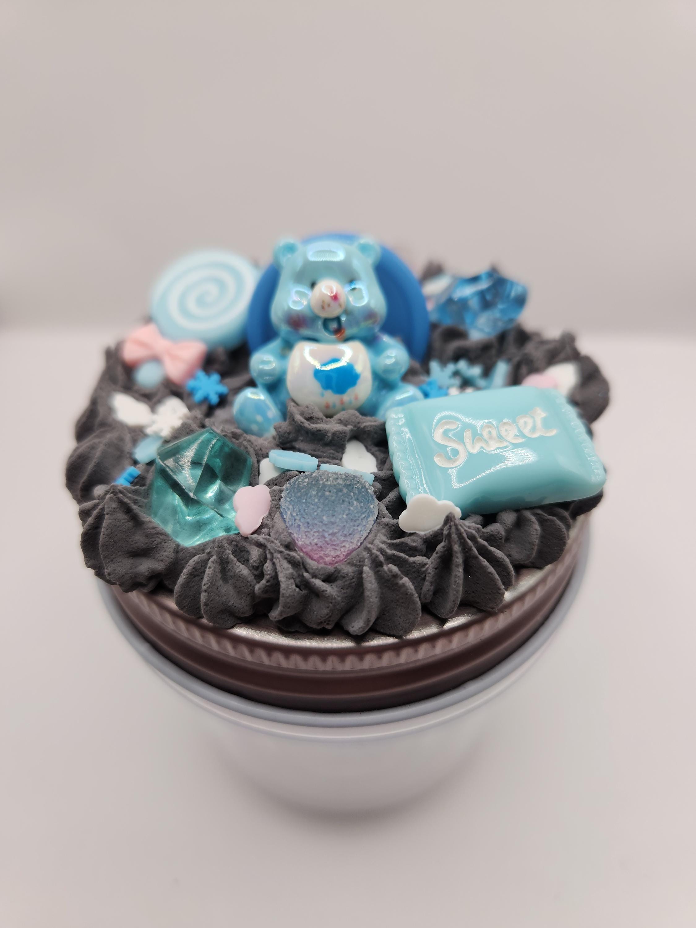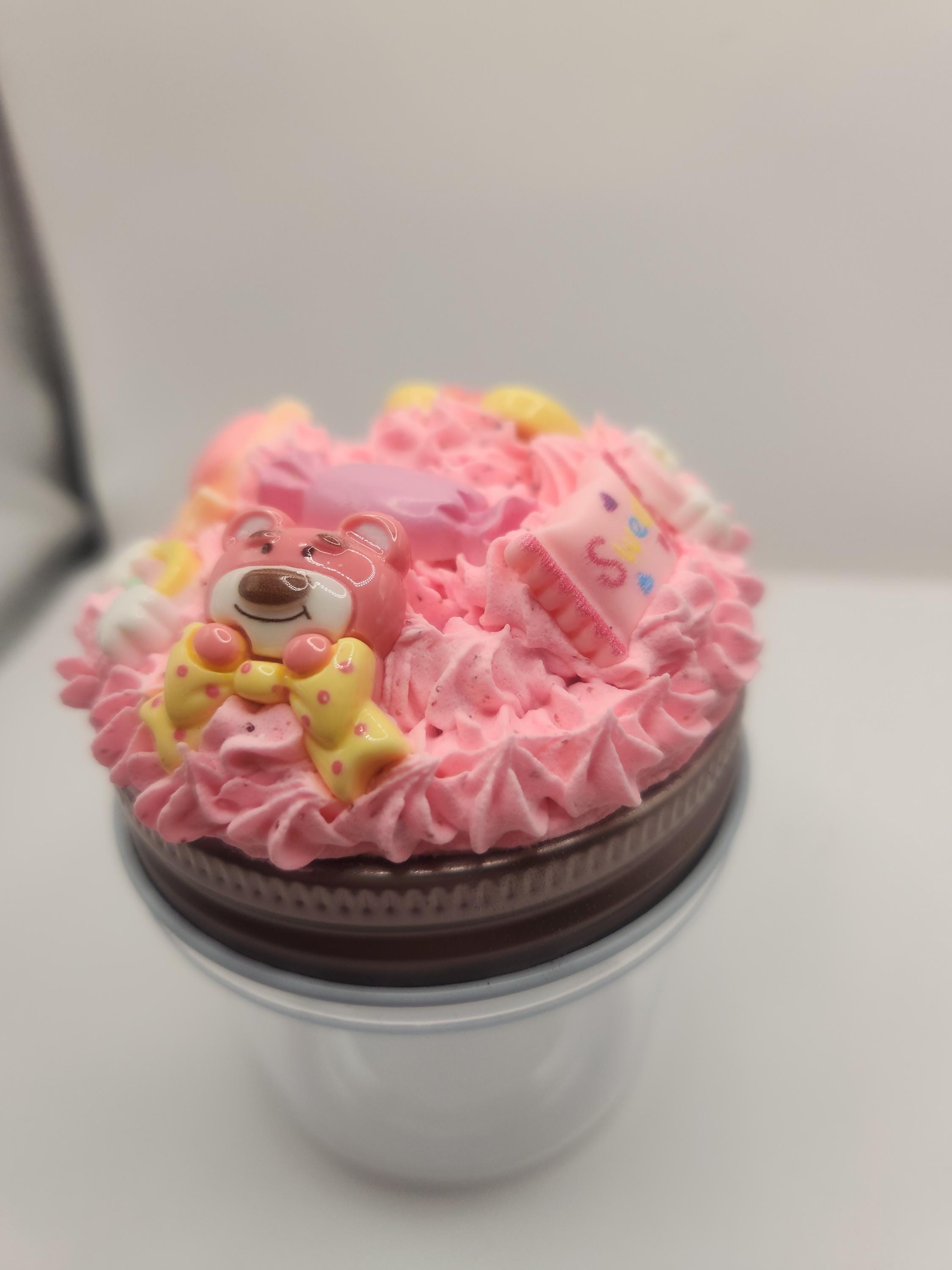 Jar lid is made using spackling, resin charms and fake sprinkles.